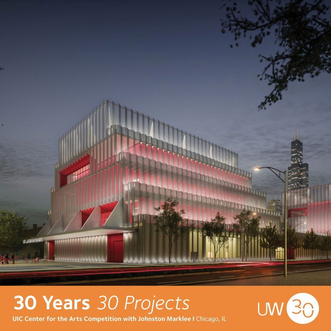 In collaboration with Johnston Marklee, our 2019 design competition entry for the University of Illinois at Chicago Center for the Arts featured perforated metal panels which shaped the distinct fluted facades of proposed building.